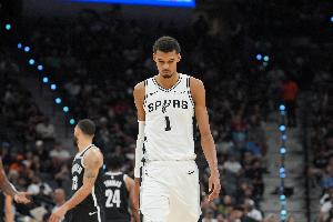 此役,文班亚马出战40分钟,投篮23中10,三分球5中1,罚球8中6,砍下27分18篮板6助攻1抢断5盖帽的数据。